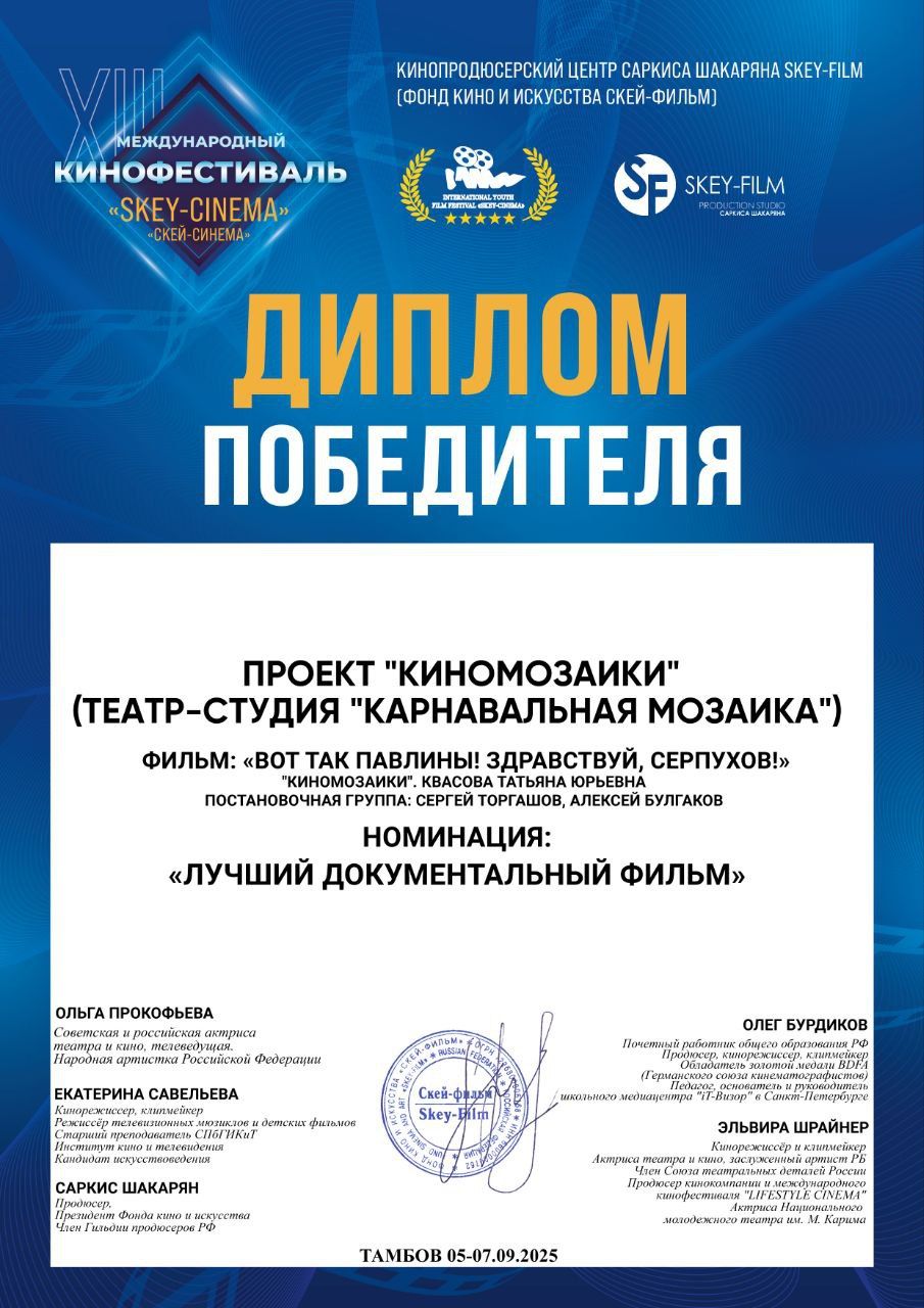 Фильм «Вот так павлины! Здравствуй, Серпухов» стал победителем в номинации: Лучший документальный фильм!