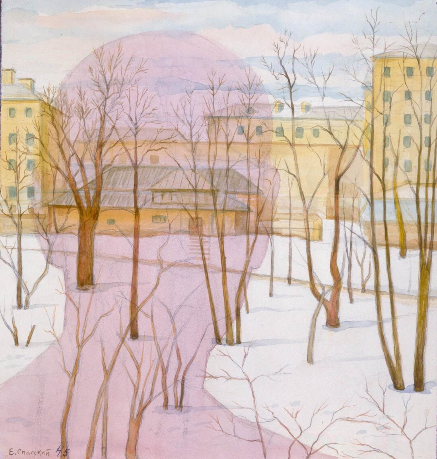 Евгений Дмитриевич Спасский — прошёл сложную эволюцию от авангарда до экспериментов в области религиозно-мистической живописи. На примере его творчества прослеживается развитие идей футуризма и символизма в живописи середины и второй половины XX века. Художник — брат ленинградского поэта и писателя Сергея Спасского, друг Давида Бурлюка, Велимира Хлебникова, Андрея Белого, Михаила Чехова, Бориса Пастернака, Василия Яна.
